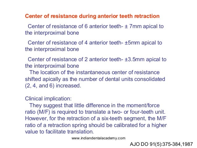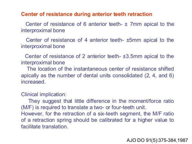 Am j orthod dentofacial orthop 91 1987 pp. Lapatkilocating the center of resistance in individual teeth via two and three dimensional radiographic data. Results the center of resistance of the 4 mandibular anterior teeth group was 130 mm apical and 60 mm posterior that of the 6 mandibular anterior teeth group was 135 mm apical and 85 mm.